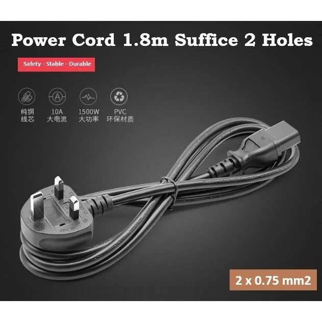Highlight: - 100% brand new UK type power cord cable (suffix 2 holes) with fuse - Safety certified and approved - Unique fuse design, make sure over-current and over temperature protection - Support 10A fuse 250V high current and up to 1500W power consumption - High quality core conductor for safety usage - cable thickness 2 x 0.75mm2 - PVC cover shield with ultra durability for bending, water resistance, tensile - Cable length : 1.8M - Can be used in wide array of devices especially for Xbox 360, Xbox One series, Playstation 4 Pro.